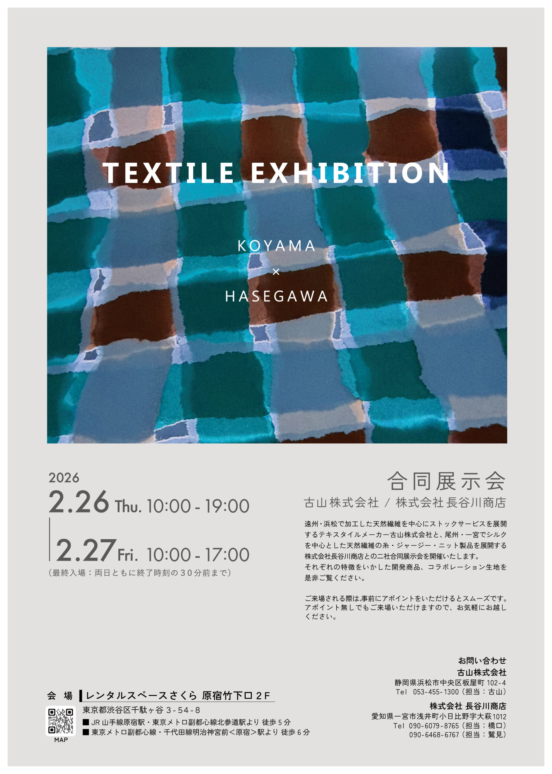 遠州・浜松で加工した天然繊維を中心にストックサービスを展開する古山㈱との合同展です。