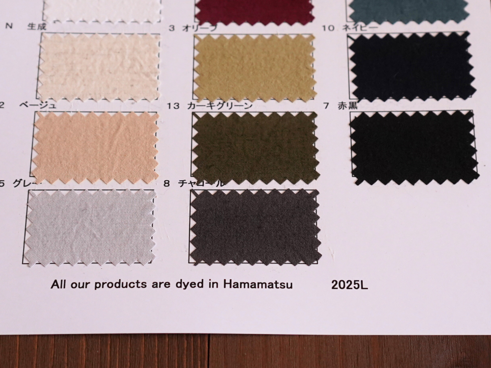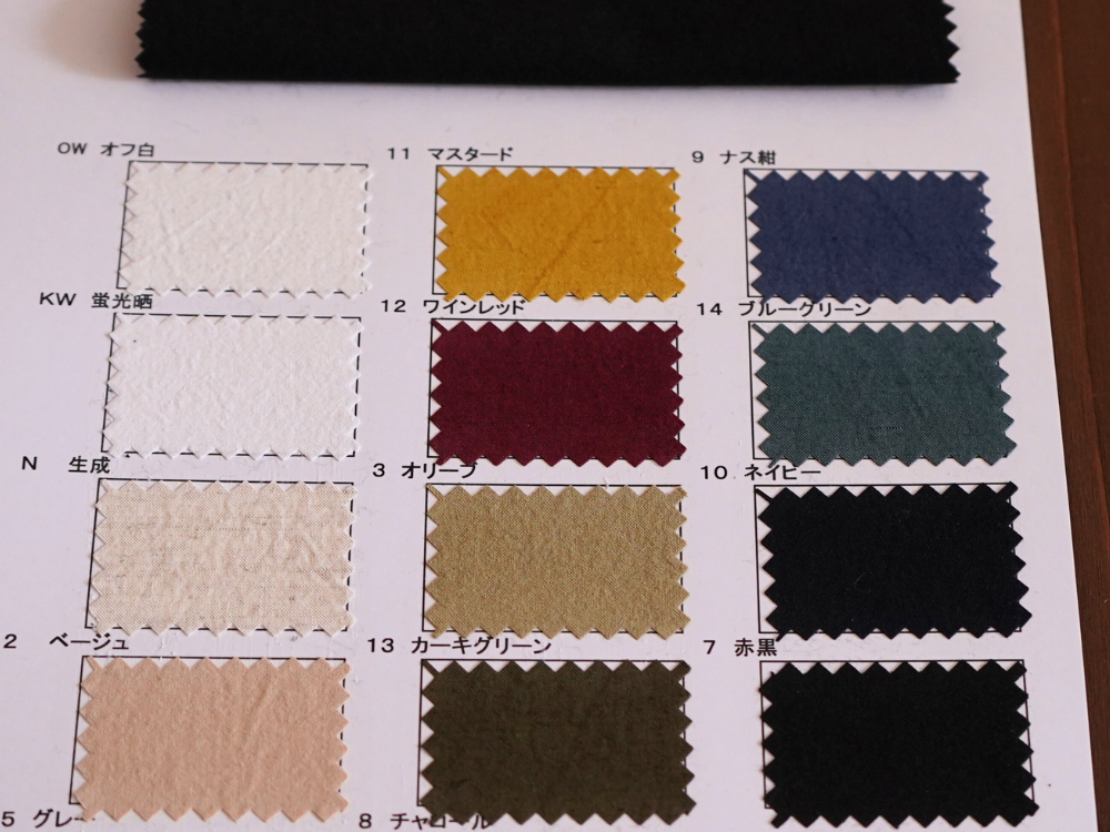 天然繊維特有の素材特性による微細欠点につきましては程度に関わらずノークレームにて予めご了承のほどお願いいたします。 商品の最新状況は営業までご確認ください。 やむを得ず廃色が発生する場合があります。 資料は手で作成しているため色番号、色名が不鮮明な場合があります。 ご了承ください。 資料の表面、裏面に記載してある特徴、注意点をご確認ください。 >>> 当ウェブサイトでは コットン(綿)、リネン(麻)、綿麻、ヘンプ、和紙、バンブー(竹)、レーヨン(ビスコース)、ナイロン、シルク などの素材を使用した生地をベースに 反応染料、硫化染料、顔料、墨(墨汁)、インディゴ、柿渋 などを使用した加工反を広く紹介しています 資料送付は無償です 是非、様々な生地をピックアップしてください |