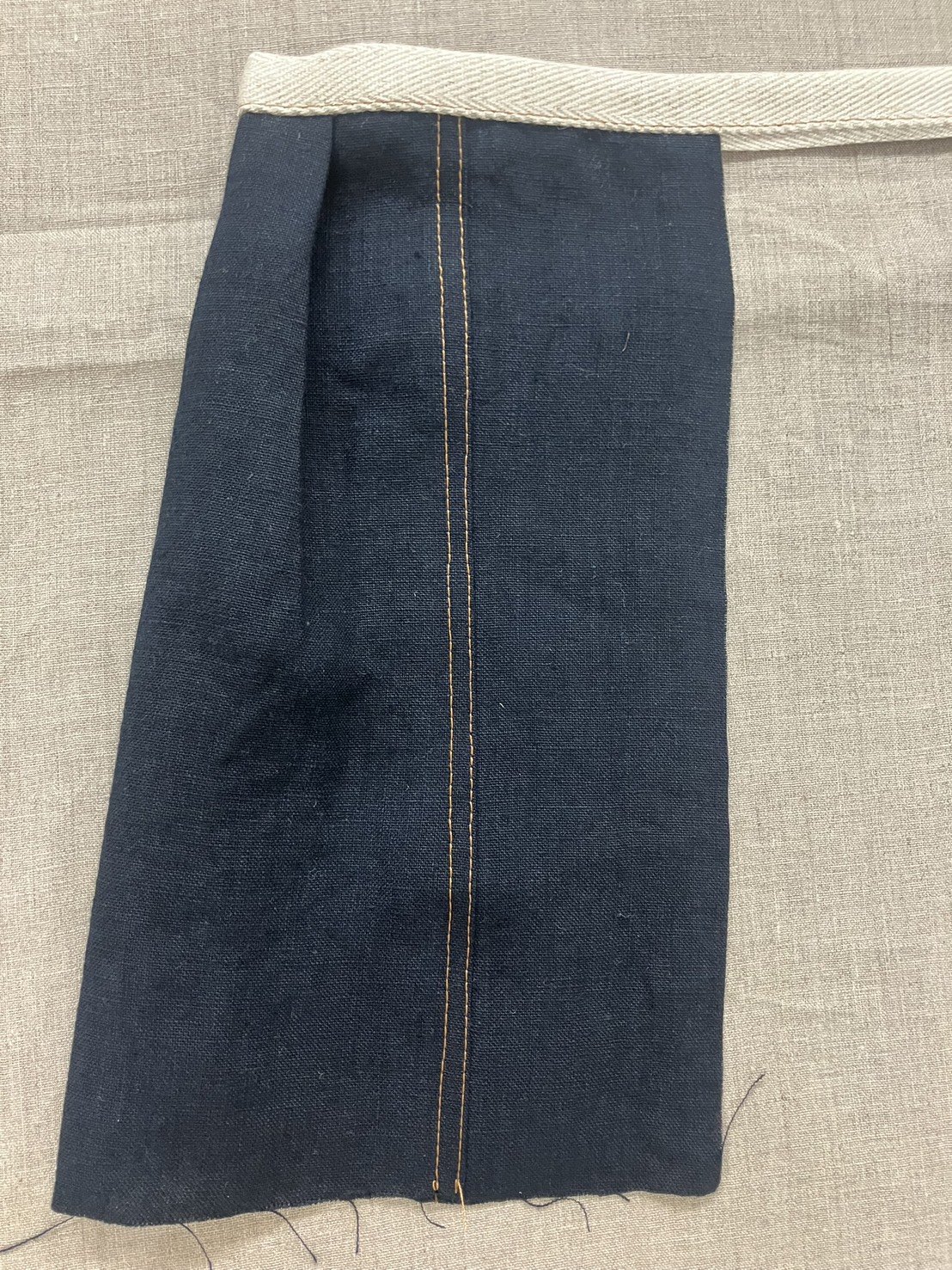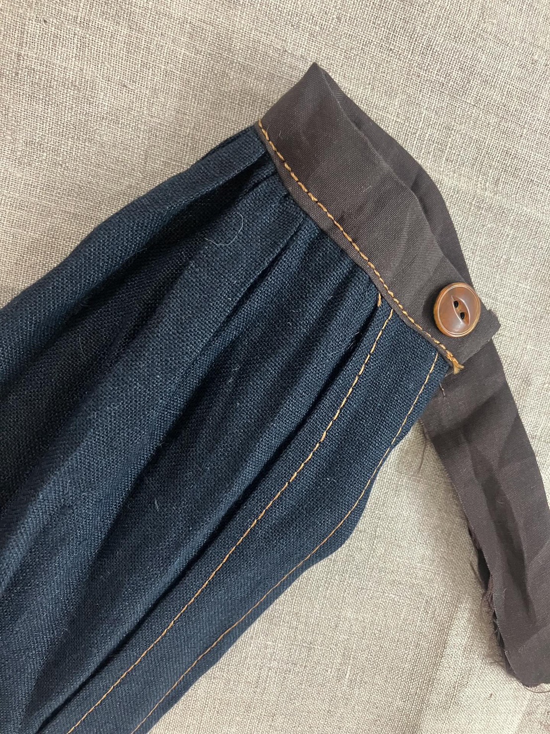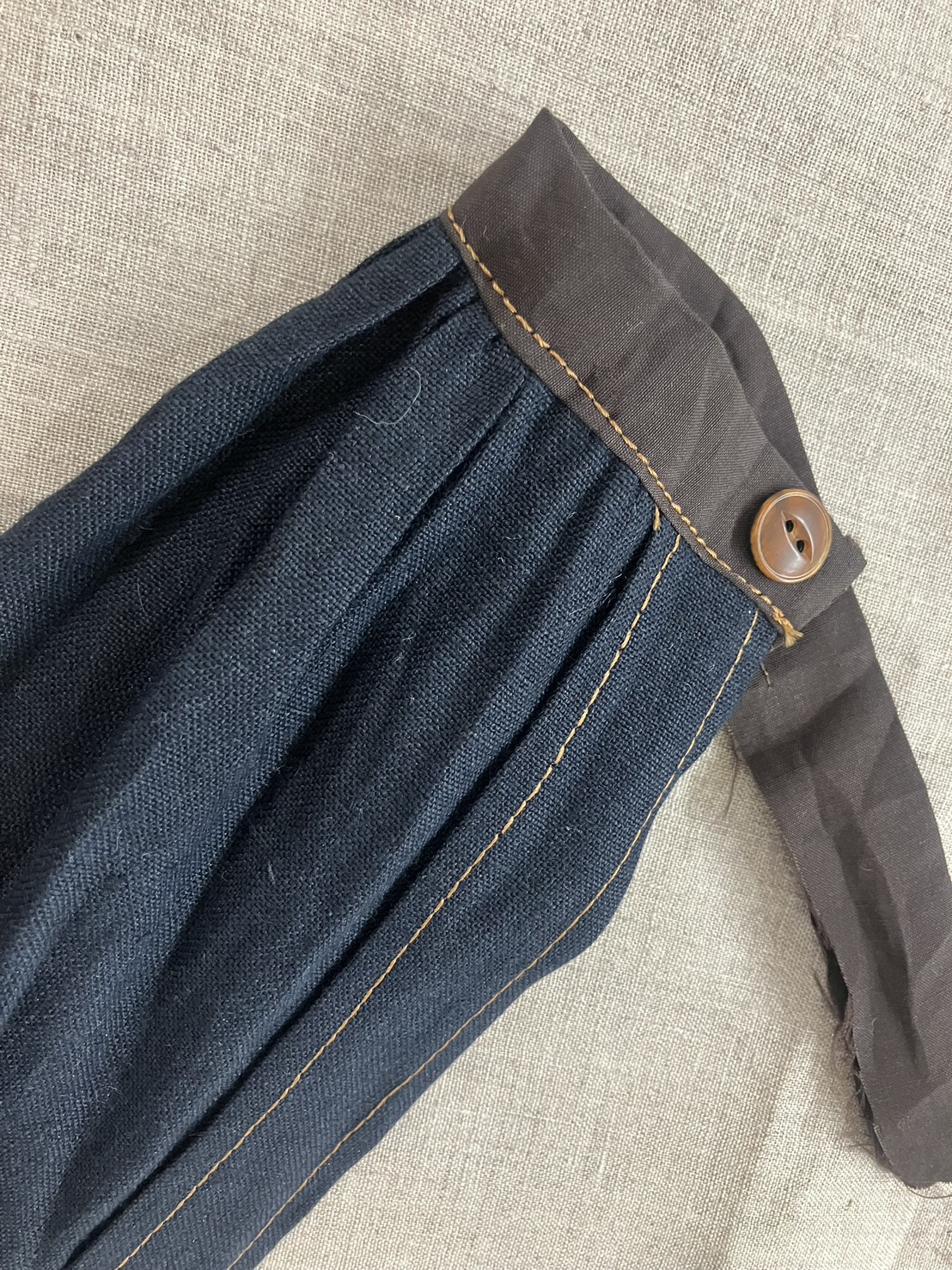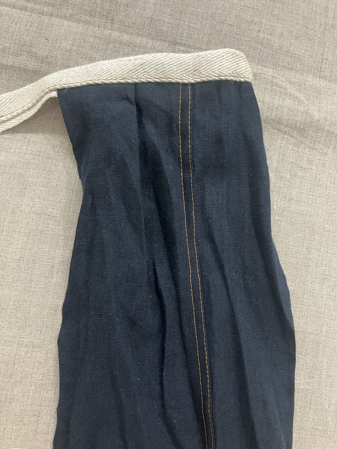 RN5022 25sリネンキャンバス #10 ネイビー ギャザー タック入れてみました やや硬さがあるリネン生地で表面に毛羽が あるので、アウターやパンツ、スカートに良いです 打ち込みしっかりしてるから仕立て映えするし 洗いをかけてヴィンテージ感を出すのも良い 優秀な生地です 是非触ってみて下さい