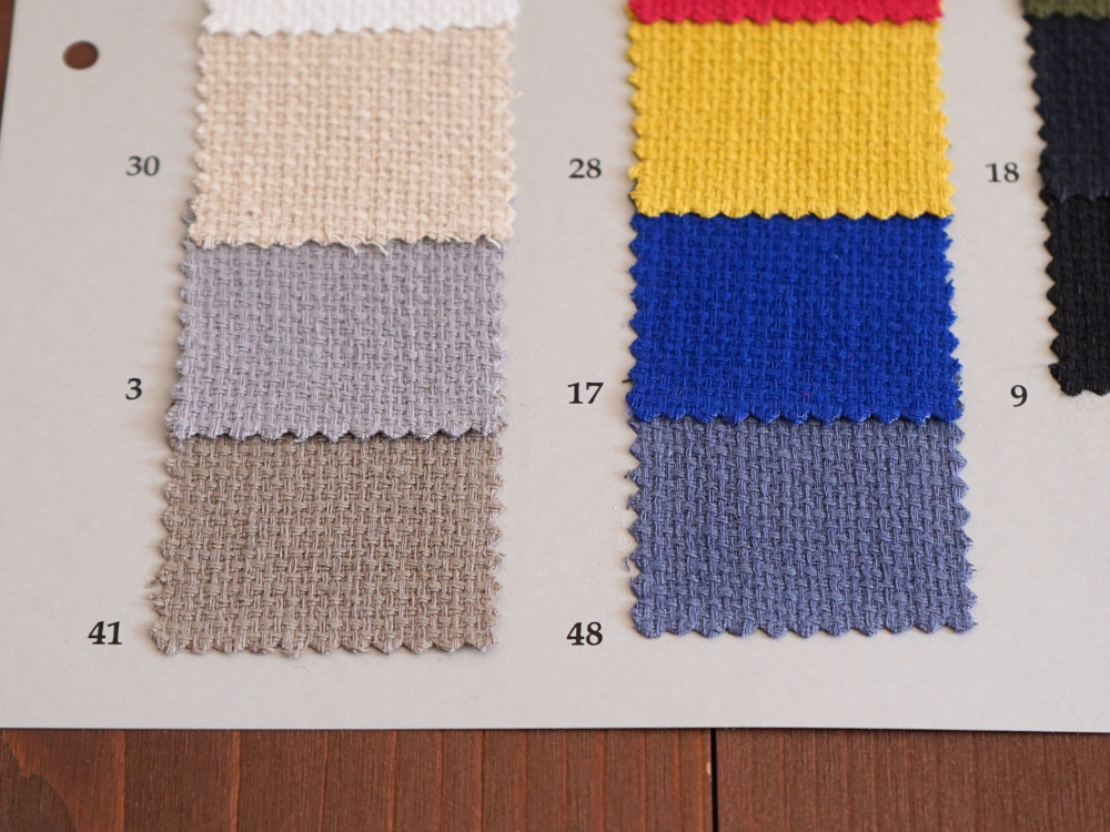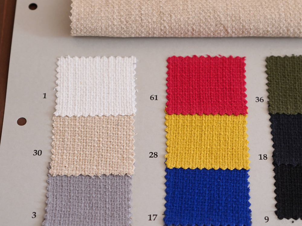 天然繊維特有の素材特性による微細欠点につきましては程度に関わらずノークレームにて予めご了承のほどお願いいたします。 商品の最新状況は営業までご確認ください。 やむを得ず廃色が発生する場合があります。 資料は手で作成しているため色番号、色名が不鮮明な場合があります。 ご了承ください。 資料の表面、裏面に記載してある特徴、注意点をご確認ください。 >>> 当ウェブサイトでは コットン(綿)、リネン(麻)、綿麻、ヘンプ、和紙、バンブー(竹)、レーヨン(ビスコース)、ナイロン、シルク などの素材を使用した生地をベースに 反応染料、硫化染料、顔料、墨(墨汁)、インディゴ、柿渋 などを使用した加工反を広く紹介しています 資料送付は無償です 是非、様々な生地をピックアップしてください |