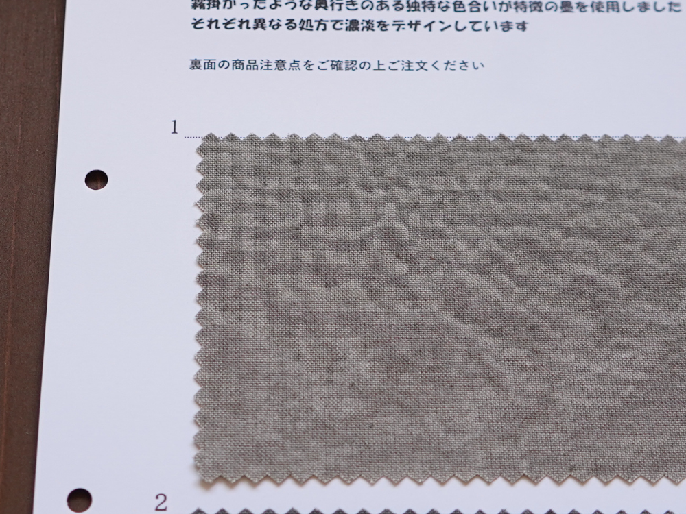 天然繊維特有の素材特性による微細欠点につきましては程度に関わらずノークレームにて予めご了承のほどお願いいたします。 商品の最新状況は営業までご確認ください。 やむを得ず廃色が発生する場合があります。 資料は手で作成しているため色番号、色名が不鮮明な場合があります。 ご了承ください。 資料の表面、裏面に記載してある特徴、注意点をご確認ください。 >>> 当ウェブサイトでは コットン(綿)、リネン(麻)、綿麻、ヘンプ、和紙、バンブー(竹)、レーヨン(ビスコース)、ナイロン、シルク などの素材を使用した生地をベースに 反応染料、硫化染料、顔料、墨(墨汁)、インディゴ、柿渋 などを使用した加工反を広く紹介しています 資料送付は無償です 是非、様々な生地をピックアップしてください |