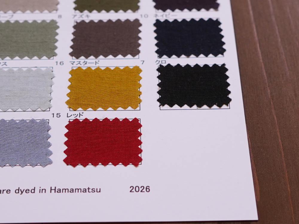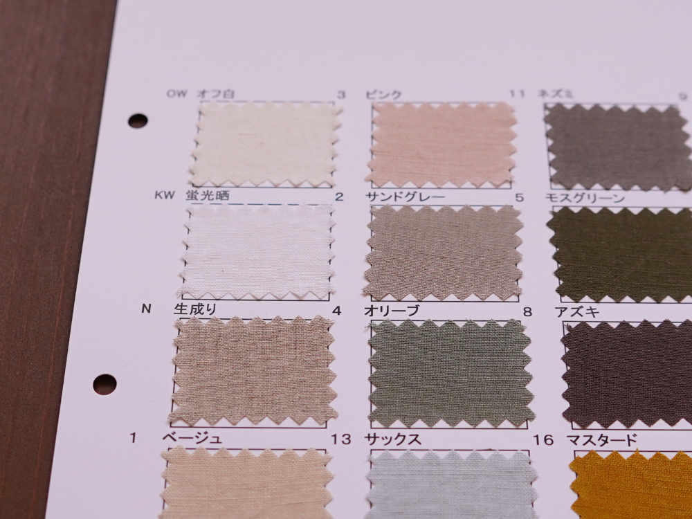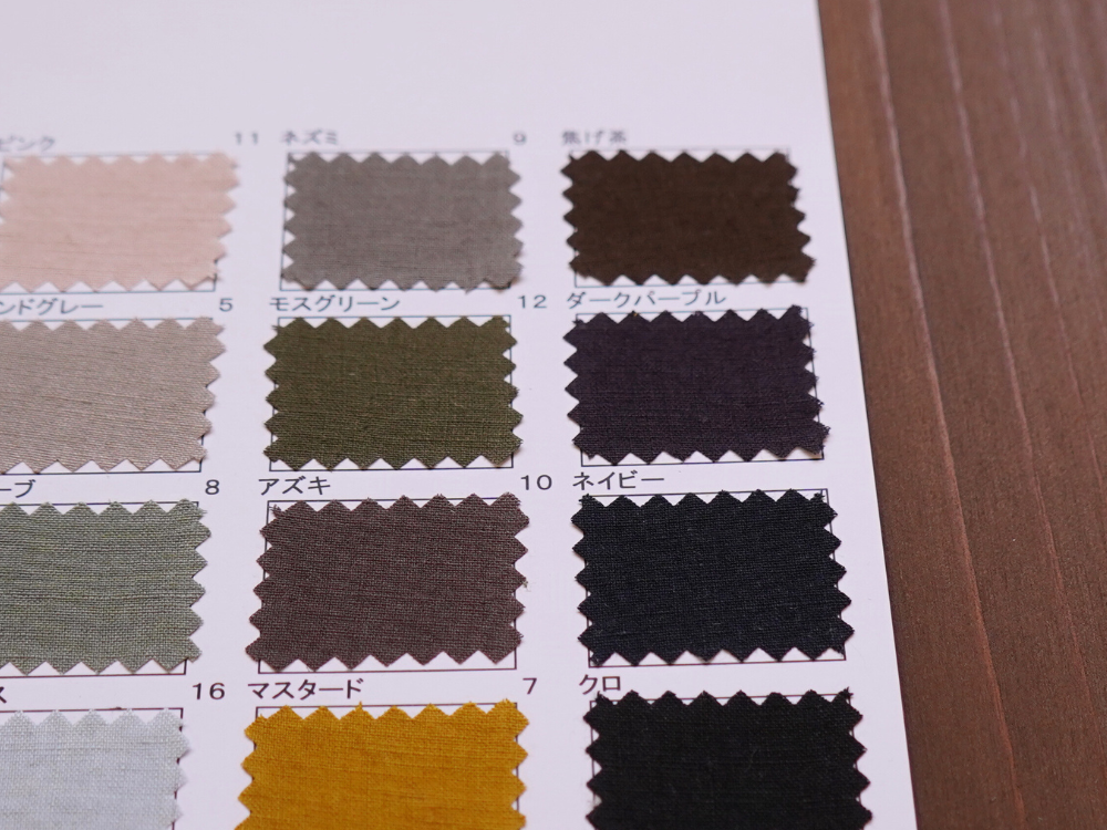 天然繊維特有の素材特性による微細欠点につきましては程度に関わらずノークレームにて予めご了承のほどお願いいたします。 商品の最新状況は営業までご確認ください。 やむを得ず廃色が発生する場合があります。 資料は手で作成しているため色番号、色名が不鮮明な場合があります。 ご了承ください。 資料の表面、裏面に記載してある特徴、注意点をご確認ください。 >>> 当ウェブサイトでは コットン(綿)、リネン(麻)、綿麻、ヘンプ、和紙、バンブー(竹)、レーヨン(ビスコース)、ナイロン、シルク などの素材を使用した生地をベースに 反応染料、硫化染料、顔料、墨(墨汁)、インディゴ、柿渋 などを使用した加工反を広く紹介しています 資料送付は無償です 是非、様々な生地をピックアップしてください |