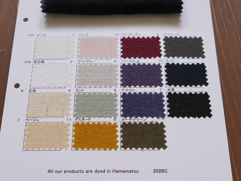 天然繊維特有の素材特性による微細欠点につきましては程度に関わらずノークレームにて予めご了承のほどお願いいたします。 商品の最新状況は営業までご確認ください。 やむを得ず廃色が発生する場合があります。 資料は手で作成しているため色番号、色名が不鮮明な場合があります。 ご了承ください。 資料の表面、裏面に記載してある特徴、注意点をご確認ください。 >>> 当ウェブサイトでは コットン(綿)、リネン(麻)、綿麻、ヘンプ、和紙、バンブー(竹)、レーヨン(ビスコース)、ナイロン、シルク などの素材を使用した生地をベースに 反応染料、硫化染料、顔料、墨(墨汁)、インディゴ、柿渋 などを使用した加工反を広く紹介しています 資料送付は無償です 是非、様々な生地をピックアップしてください |